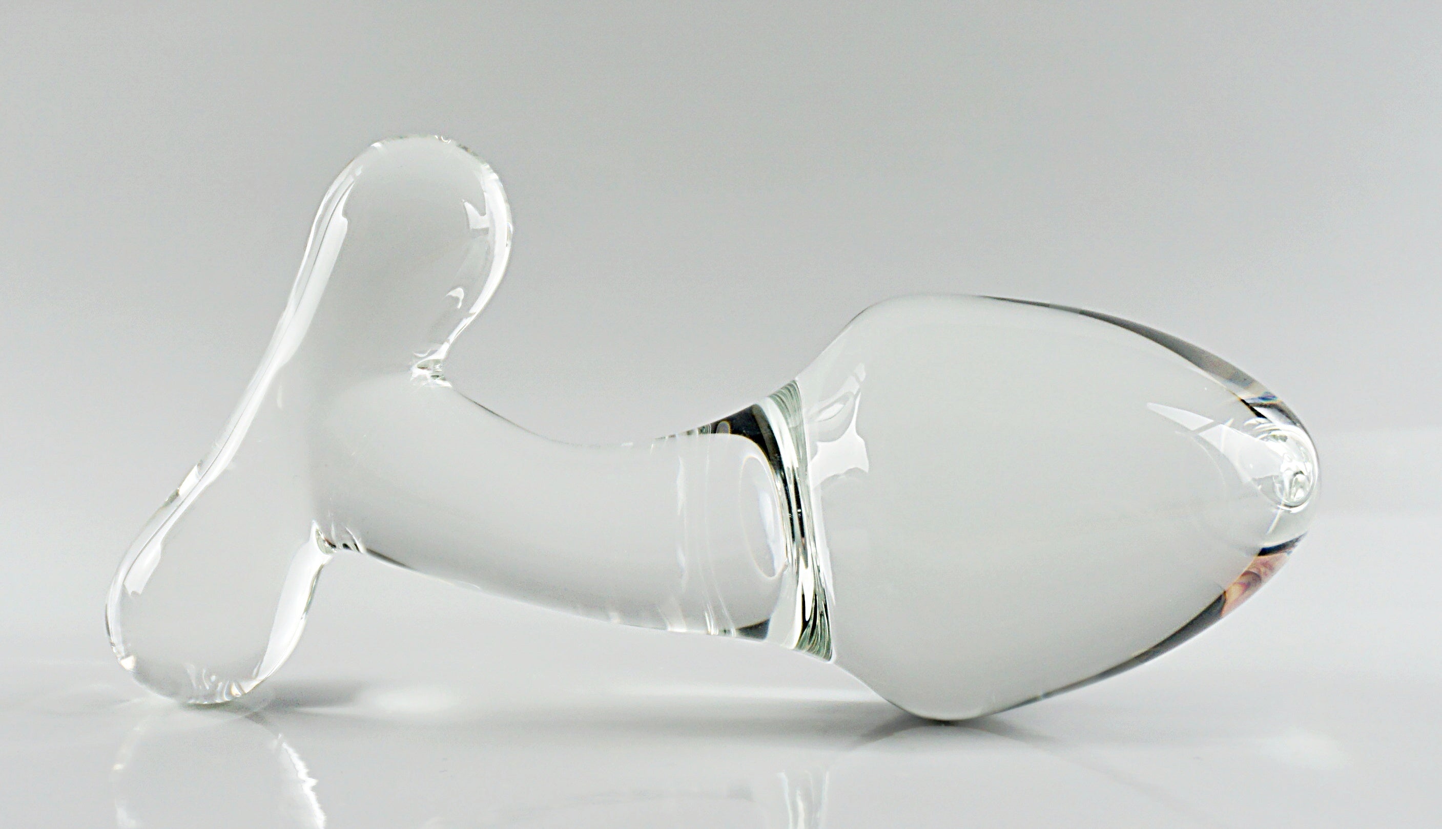 Plug anal en verre sculpté de taille moyenne avec tête de pénis